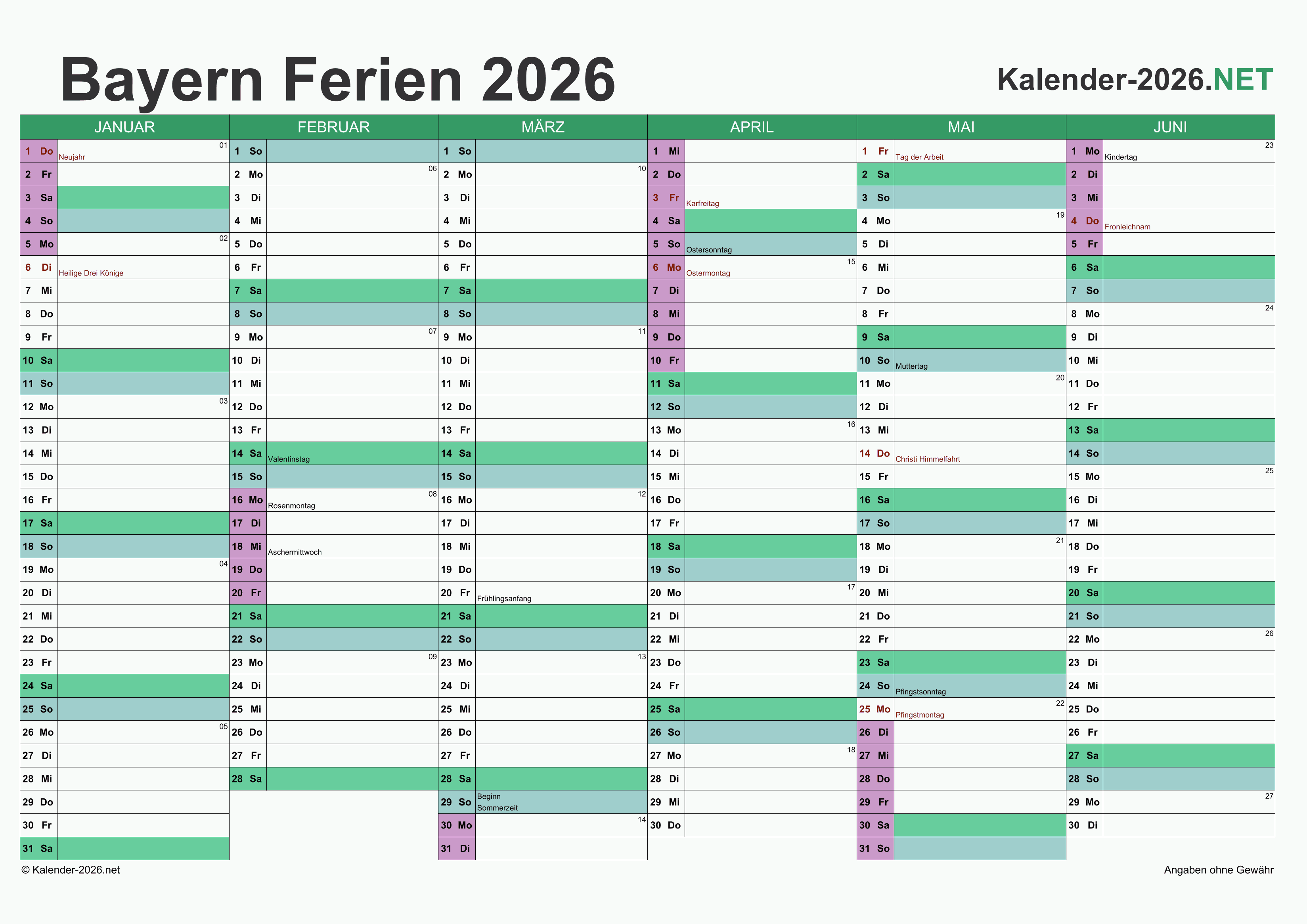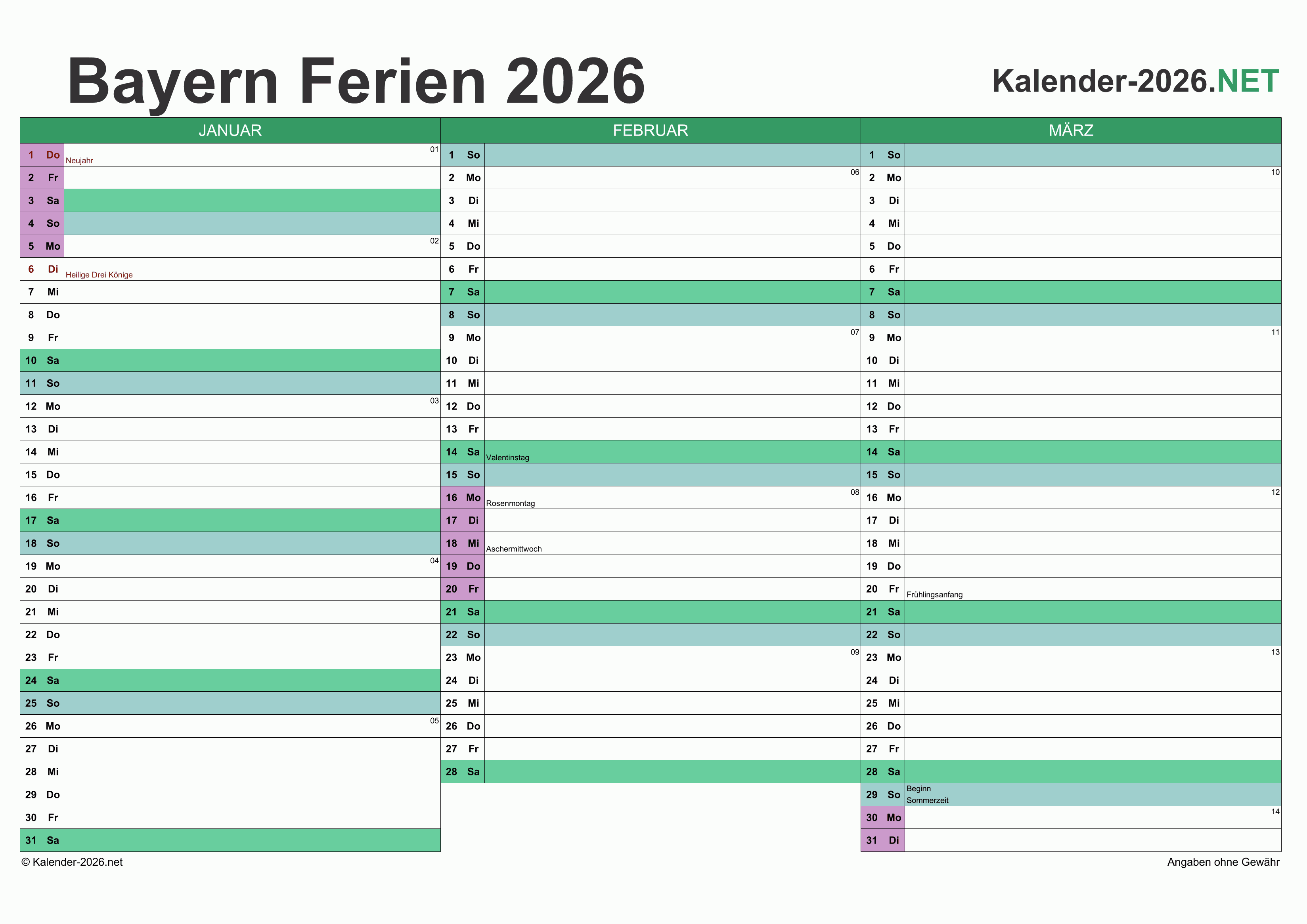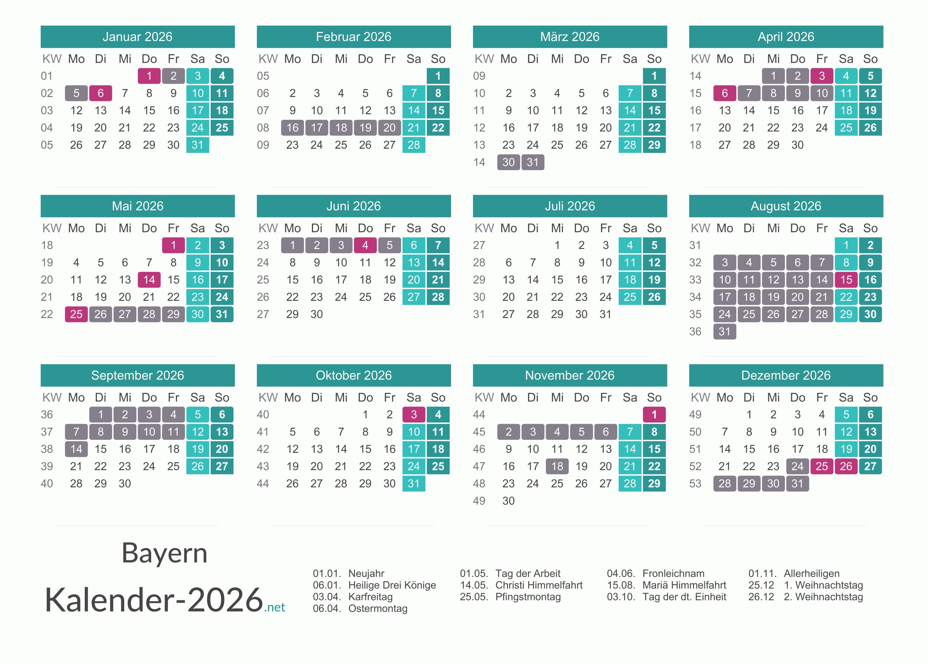 Klicken Sie hier, um im Kalender 2026 Bayern einzublenden: